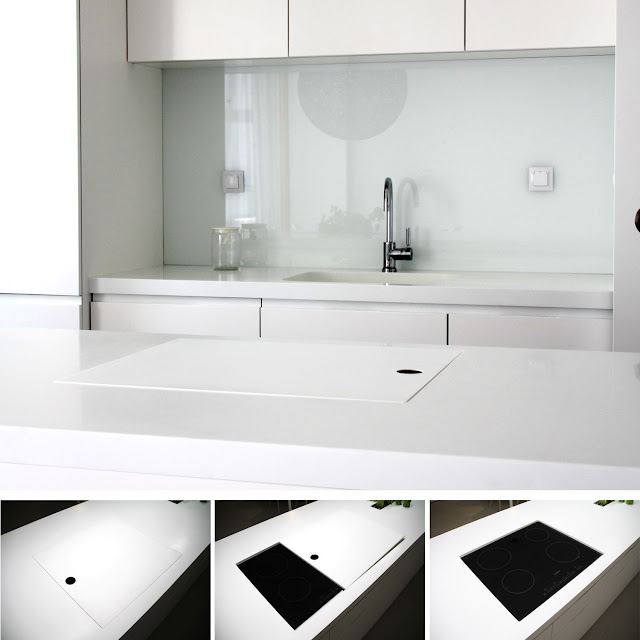 A cover for the induction plate in the same Corian material as the rest of the island.
